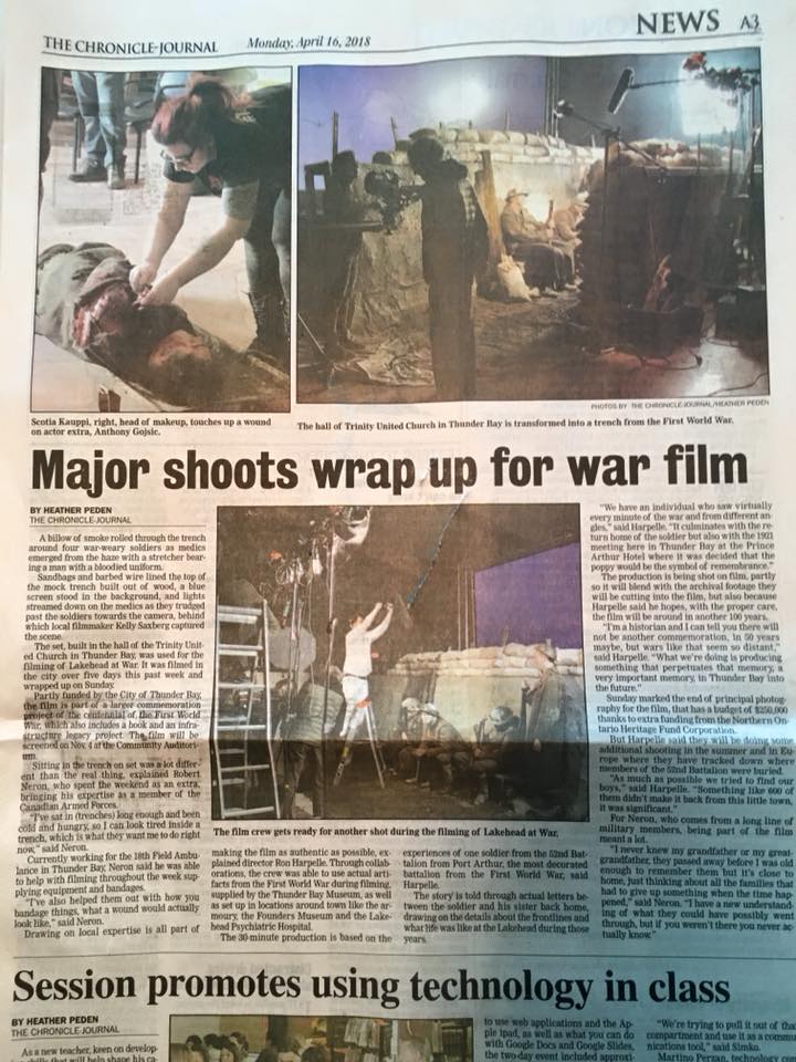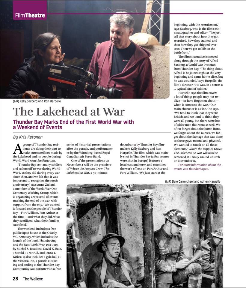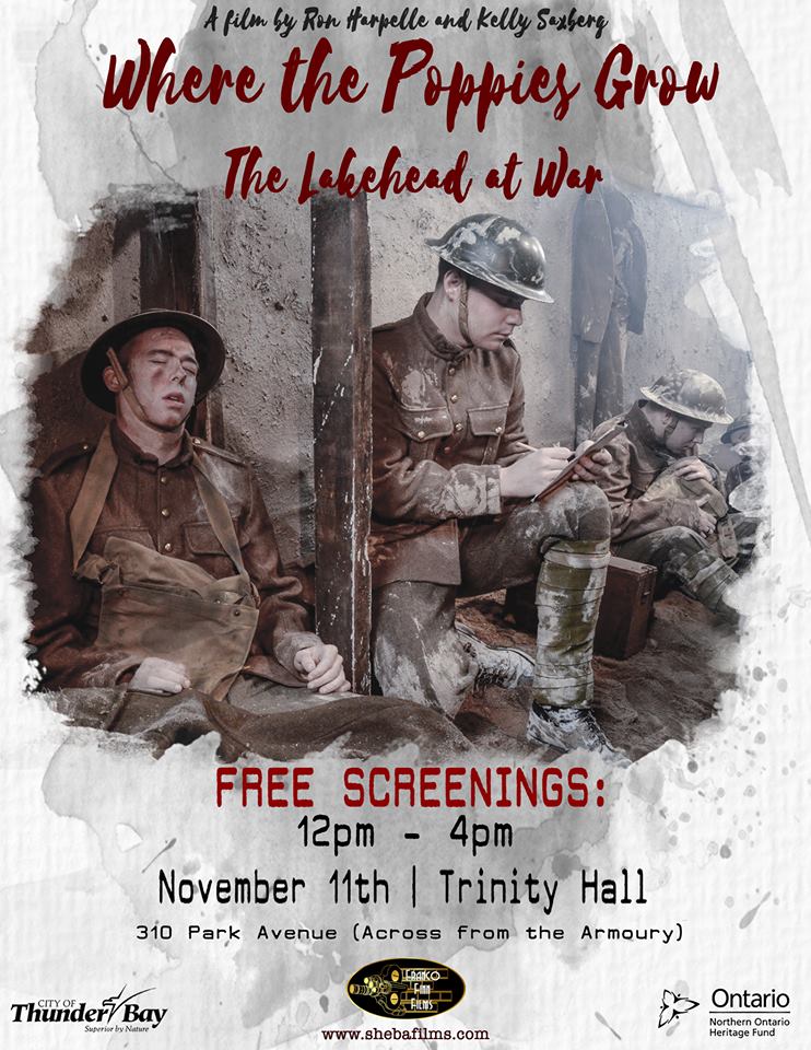 Where the Poppies Grow is a short docu-drama about one soldier during the Great War. Alfred Saxberg was a first generation Finnish Canadian who signed up at the beginning of the war and was fortunate to return home in 1919. When the Great War ended In November 1918, the people of the Lakehead could take pride in the contributions they had made. Over 6,200 people enlisted either as volunteers or conscripts. At home, the community supported the war by raising money to assist soldiers’ wives, children, and other dependents. There were also campaigns to help finance the purchase of military equipment and to send personal items to the soldiers overseas. By the end of the conflict, approximately 300 people from the Lakehead were killed overseas or died of illness due to their war service. Thousands more were wounded in body and mind. Where the Poppies Grow is a docu-drama that looks at the sacrifices made by people from the Lakehead to secure victory in the war.